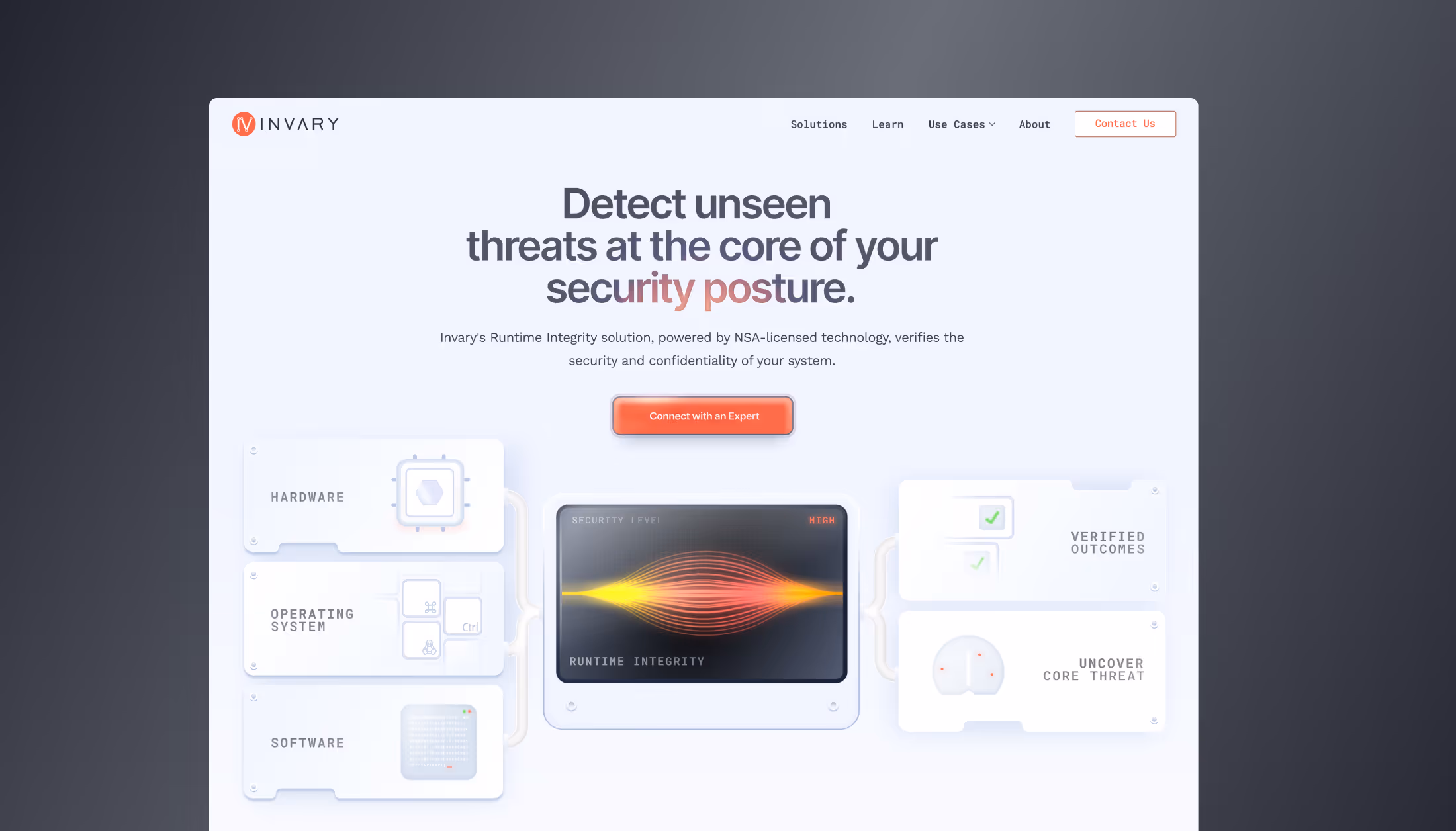 Invary, a cybersecurity startup focused on runtime integrity, approached us with a clear ask that their website felt flat, uninspired, and was due for expansion.